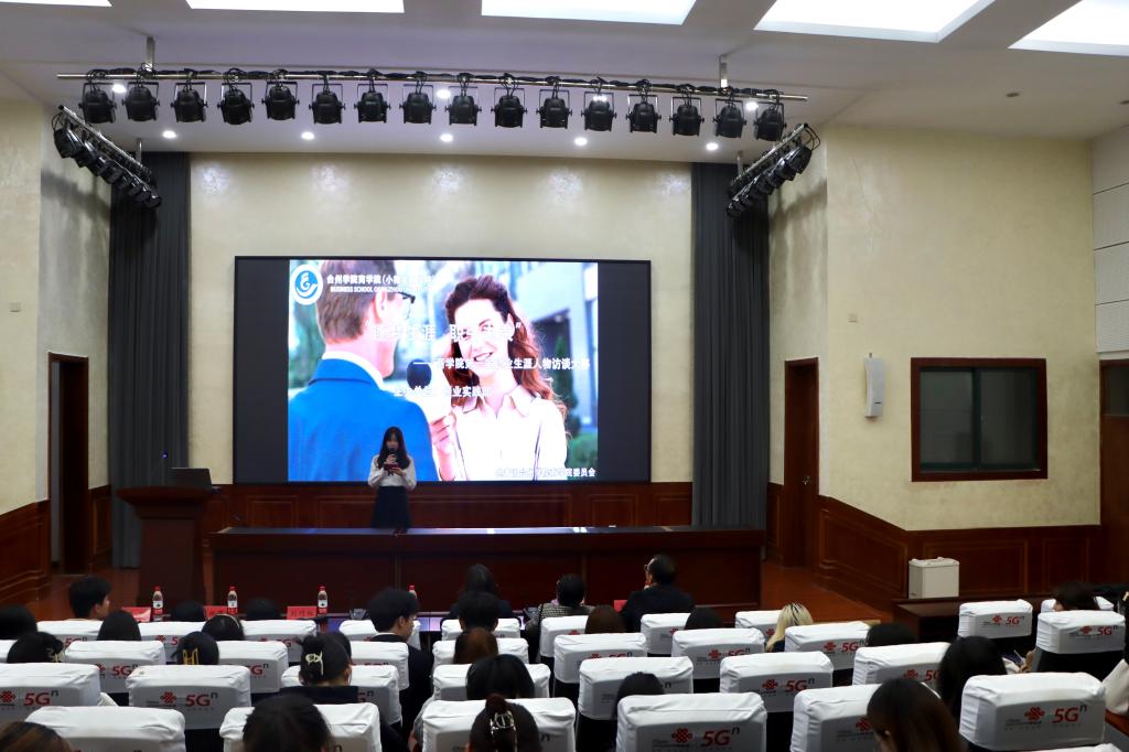 为助力学生明确未来职业发展道路,商学院于3月22日晚在商学院506报告厅举办了“逐梦生涯,职引未来”第一届职业生涯人物访谈大赛。此次活动特邀椒江区政协机关主任符伟,恒申科技董事长林湘莲,富杰德人力资源总监王英,泰隆银行台州分行校招负责人刘巧红,商学院党委书记马斌,商学院党委副书记陈斌岚和商学院辅导员项民。
