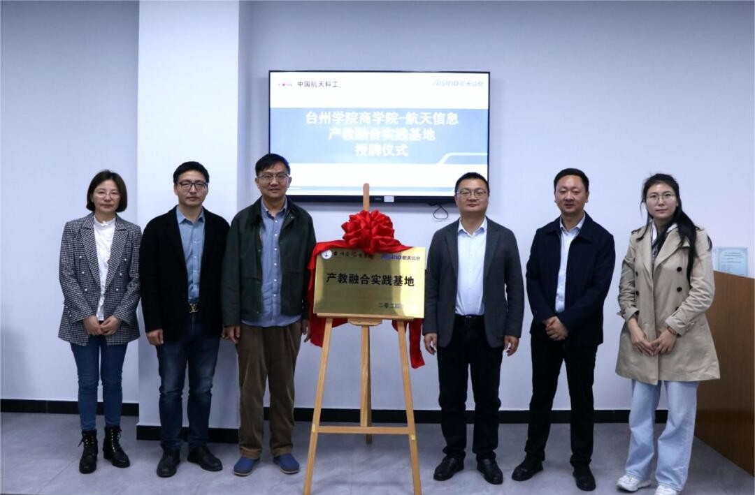3月26日上午,台州学院商学院与浙江爱信诺航天信息技术有限公司台州分公司(以下简称台州航天信息)产教融合实践基地授牌仪式在台州航天信息举行。台州学院商学院副院长陈国栋、财务管理系主任廖正华、李美芳老师;台州航天信息总经理鲁军、综合事业部经理黄官松、行政人事部经理杨妙霞出席授牌仪式。