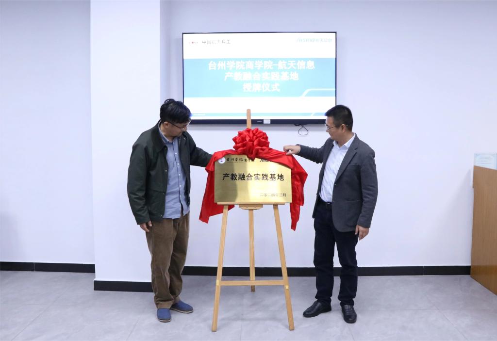 座谈会后,陈院长与鲁总共同为台州学院商学院与台州航天信息产教融合实践基地揭牌。产教融合实践基地的挂牌,旨在提升学生的实践能力和就业竞争力。双方将共同开展实践课程、科研项目、人才培养等方面的合作,为学生提供更加全面、深入的教育培训。同时,为学生提供更多的实践机会,促就业、保就业。