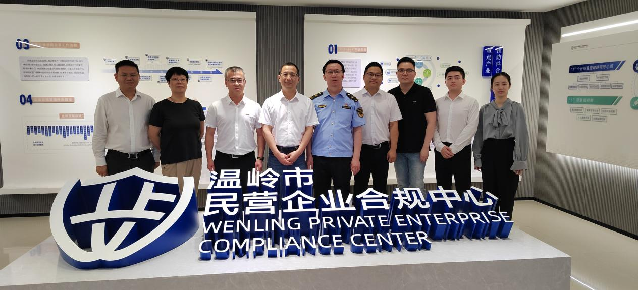 为加强企业合规建设学习交流,推动法治营商环境,进一步深化台州企业合规研究中心的工作,2024年6月14日,由商学院党委书记马斌带队,中银(台州)律师事务所党支部书记、主任徐先宝等台州企业合规研究中心一行到温岭开展合规建设调研考察。温岭市司法局党组书记、局长庄启龙,温岭市市场监督管理局副书记、副局长阮兢青等出席本次调研座谈。