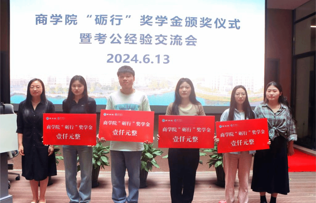 为表彰优秀学子,实现“一线多途”高质量就业,6月13日下午,商学院在学院一楼中厅举行“砺行”奖学金颁奖仪式暨考公经验交流会。商学院党委副书记陈斌岚出席活动,辅导员赵之遐主持活动。活动特邀砺行教育管理院院长王景芳参加。