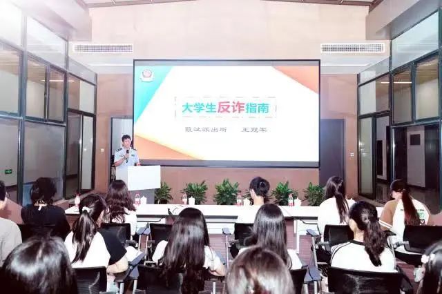 聘任仪式上,项凤日为王冠军颁发“校外法治辅导员”聘书。仪式结束后,王冠军为我校商学院学生作首场讲座--《大学生反诈指南》。