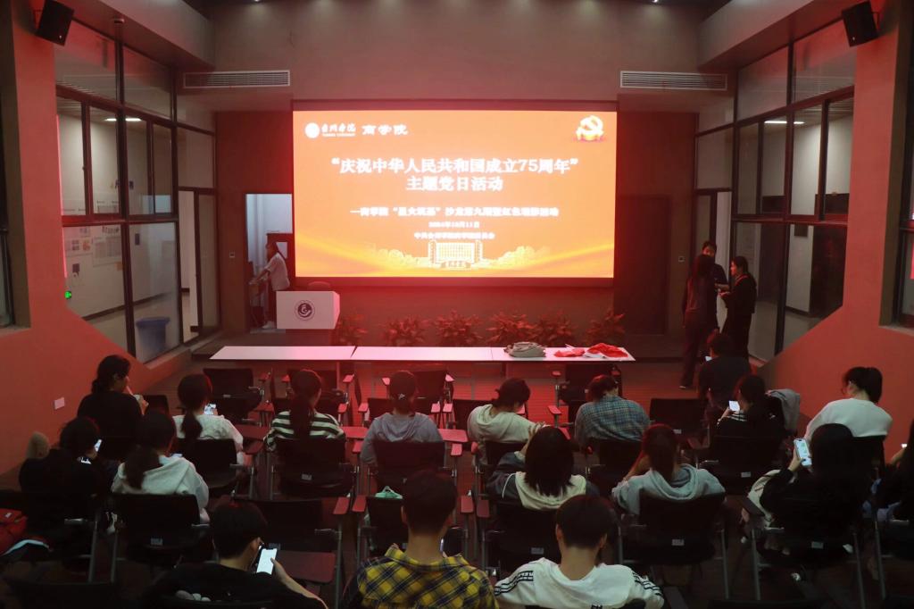 10月11日晚,为传承红色文化,弘扬爱国精神,汲取奋进力量,商学院星火先锋队于商学院一楼中厅举办“星火筑基”沙龙(第九期)“庆祝中华人民共和国成立75周年”主题党日活动,观看电影《冲锋》,同学们踊跃报名参加。