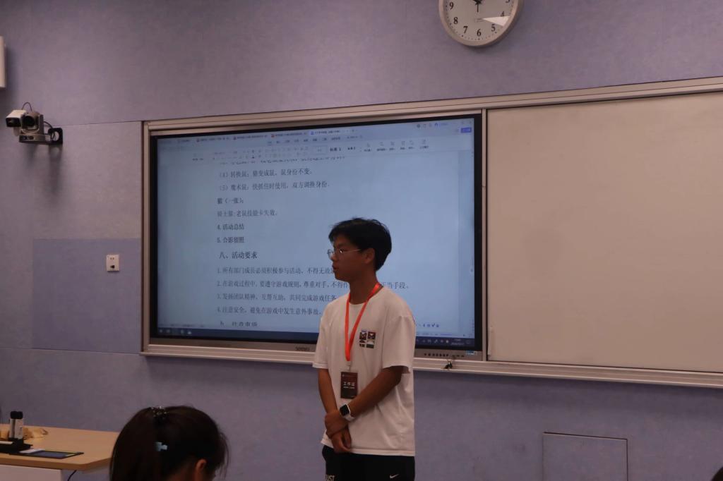 活动开始前,由先锋队主席许欣怡为队员们介绍本次活动规则。本次活动主要围绕“猫抓老鼠”游戏展开。“猫抓老鼠”游戏是一种集智慧与速度于一体的团队合作游戏。游戏规则简单而有趣:一方扮演“猫”,另一方则扮演“老鼠”。90分钟内,“猫”需要尽力抓住“老鼠”,而“老鼠”则要灵活运用策略躲避“猫”的追捕。为了增加游戏的趣味性,活动还设置了跳舞鼠、飞飞鼠等七张能力卡片,帮助成员们在关键时刻获得助力。队员们抽签获得能力卡片。