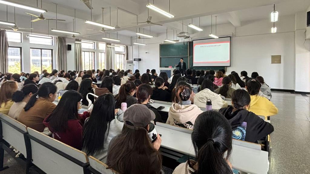 为加强学生对考公的认知,缓解学生的备考压力,帮助学生实现“一线多途”高质量就业,11月7日,商学院特邀砺行公考面试研究院院长、砺行公考申论高级讲师、砺行公考面试高级讲师祝文峰为大三学生作公务员备考指导。