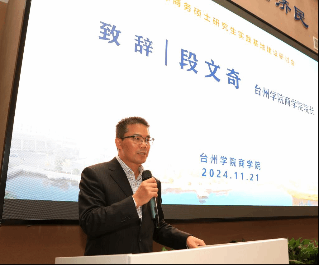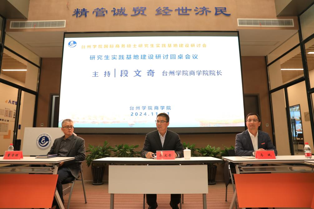 11月21日下午,国际商务硕士研究生实践基地建设研讨会在台州学院商学院举行。商学院院长段文奇、党委书记马斌,有关县(市、区)商务局及相关处室负责人,实践基地合作企业代表与部分跨境投资服务联盟单位代表,及国际商务硕士专业学位点专任导师和行业导师等40多人参加此次活动。