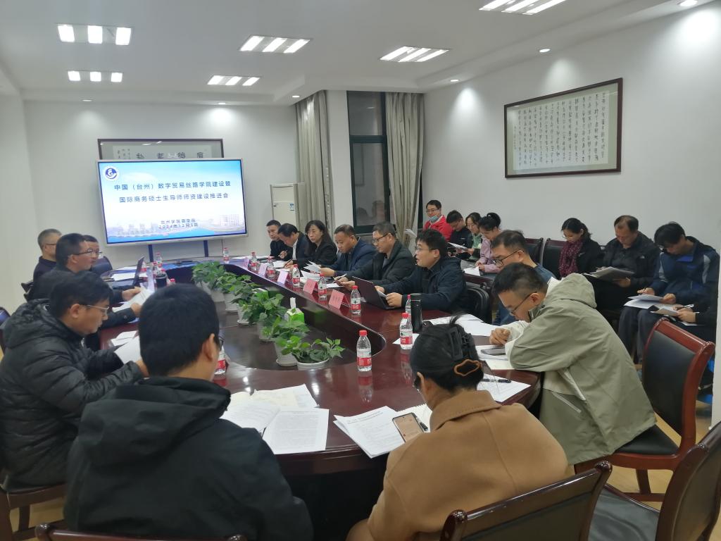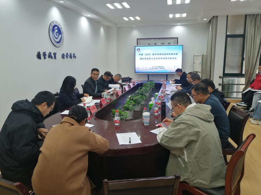 12月5日,商学院召开中国(台州)数字贸易丝路学院建设暨国际商务硕士生导师师资建设推进会,商学院院长段文奇主持并讲话,学院党委书记马斌,副院长陈国栋、董雪旺,国贸系负责人及相关老师,国际商务学位点负责人及硕士生导师,学院办公室有关老师等参加会议。