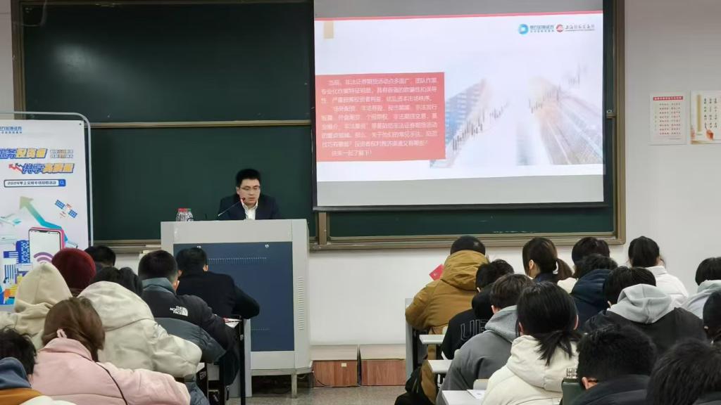 为丰富学生的金融知识,加强金融风险防范意识,12月12日,商学院邀请万宏源证券台州分公司证券投资顾问吴志华一行走进校园,作“服务投资者,共享高质量”主题讲座,100多名学生到场参加。