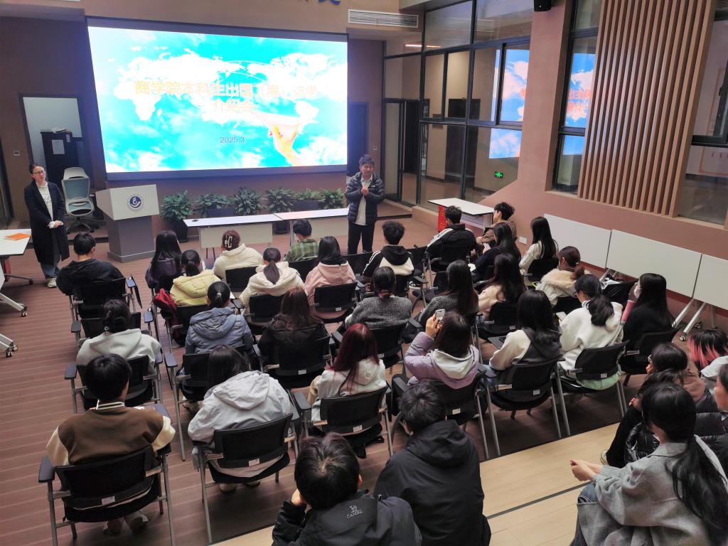 为进一步推进国际化交流,服务我校国际化建设,拓宽学生国际视野,提升跨文化交流能力。3月13日下午,商学院召开了本科生出国(境)访学介绍会。会议邀请了国际交流与合作处合作交流中心主任刘明敏老师。商学院副院长陈国栋主持会议,商学院各班级代表以及有意向出国交流的学生参加会议。