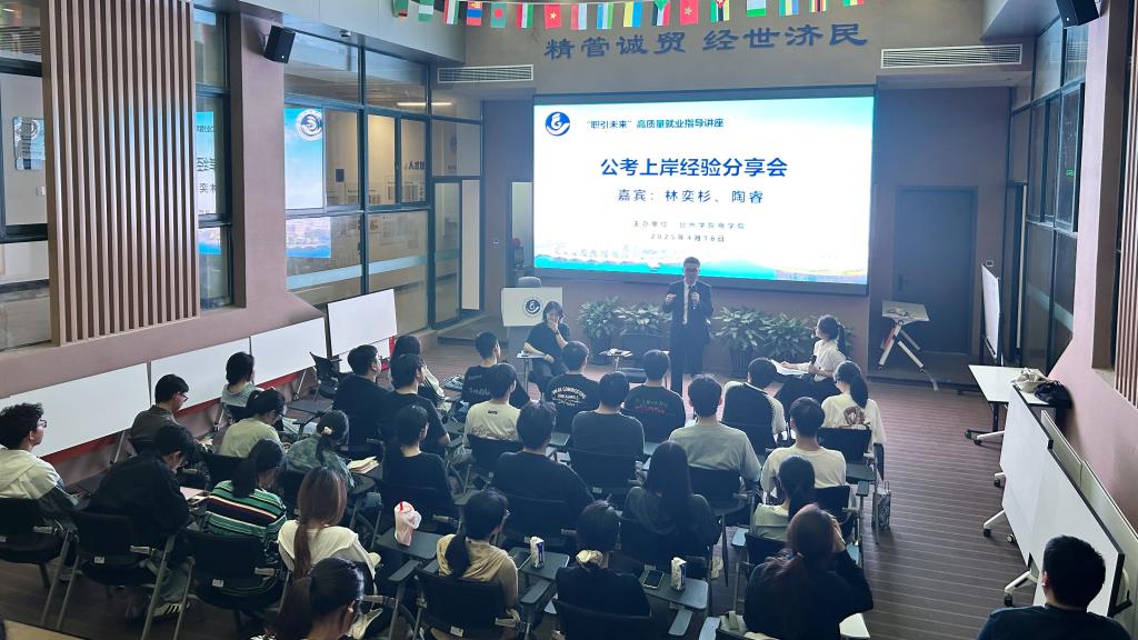 为帮助同学们高效备考,4月18日,商学院在一楼中厅举行公考上岸经验分享会。本次分享会特邀成功考上温岭市应急管理局的林奕杉同学和湖州市公安局的陶睿同学分享考公经验。