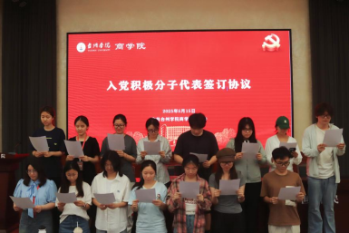 课后,党员和入党积极分子代表现场签订承诺书,此次承诺书签订活动是商学院推动党建与学生工作深度融合的重要举措。通过公开承诺,党员和入党积极分子进一步明确了自身的责任,立志发挥党员的先锋模范作用,深入推进“课堂革命”,为打造“和合台院、活力台院、美丽台院、幸福台院”贡献自己力量。