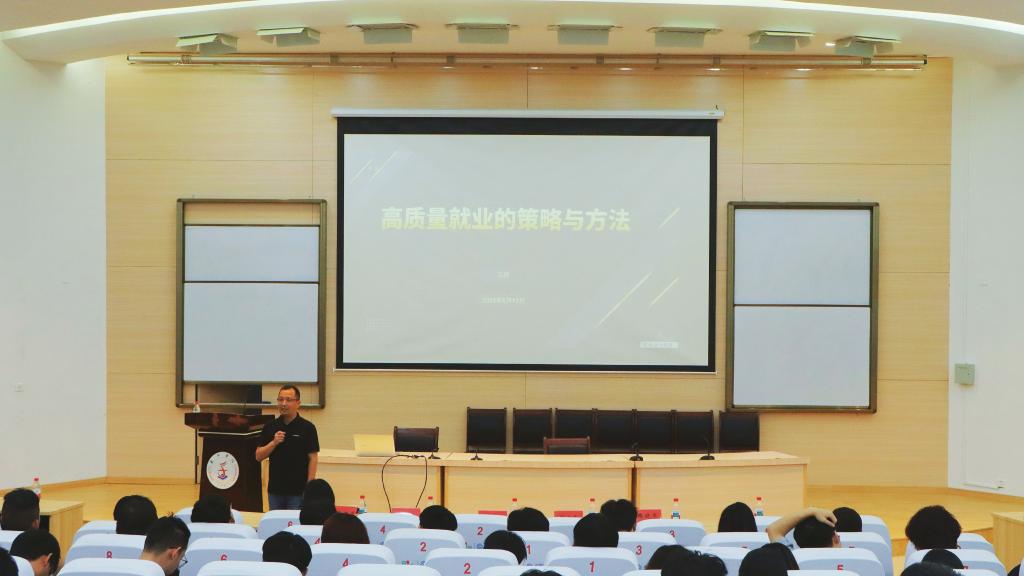 商学院党委书记马斌以《高质量就业的策略与方法》为题作就业指导专题讲座。他结合近年高校毕业生就业数据与市场动态,提出“就业本质是一种思维方式”的核心观点,希望同学们积极主动完成从“校园人”到“职场人”的思维转变,以“一线多途”高质量就业策略为指引,破除“非白领不做、非本专业不看、非高薪不瞧、非大型企业不去、非大城市不去”五大误区,以“专业素养+综合能力”双核驱动,调整心态、积极寻求帮助、谨防求职陷阱,用行动实现高质量充分就业。