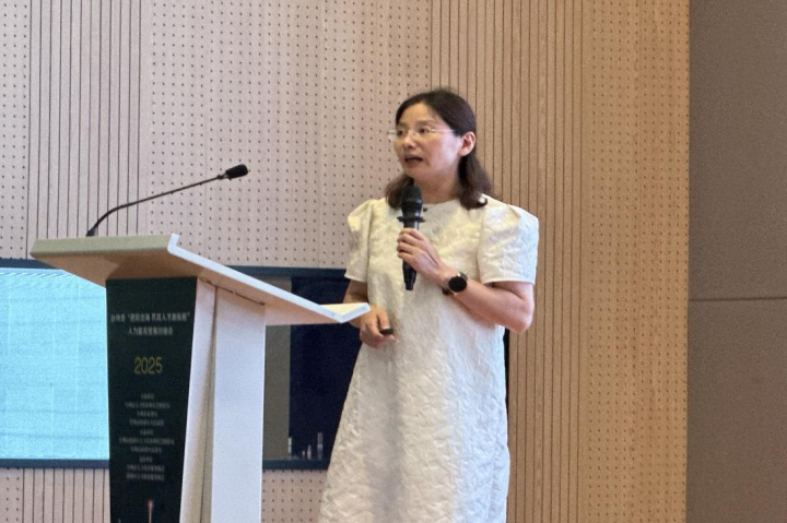 会上,李美芳老师受邀发表主题分享,她结合学院人才培养方案,围绕“高校跨境人才培养与企业出海赋能”展开深度解读。她介绍了商学院(中国(台州)数字贸易丝路学院)跨境人才培养的特色服务,从跨境电商人才定制化培养、多语种培训(涵盖商务英语及东南亚、非洲小语种等),到留学生联合培养与海外投资咨询,全方位助力企业破解国际化人才难题。