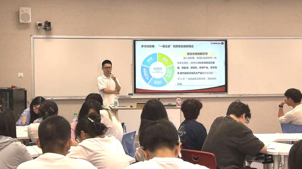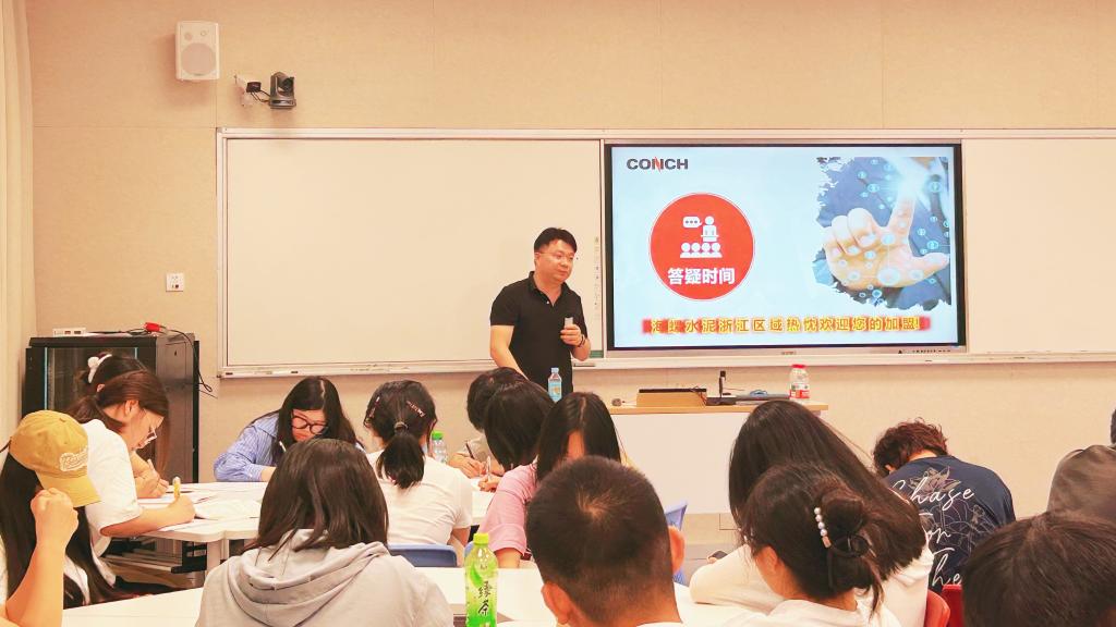 张洋从企业发展历程和全球业务布局等维度,全面展示了海螺水泥的雄厚实力与广阔前景。他介绍,海螺水泥是海螺集团下属公司。海螺集团是全国500强、国有控股上市企业,业务覆盖水泥制造、化学建材、节能环保等多个领域,分公司及网点遍布国内20多个省份,并成功拓展至“一带一路”沿线20个国家。迪拜哈利法塔、上海东方明珠、上海经贸大厦等都是海螺水泥建造的重点工程。海螺水泥还广泛应用于杭州湾跨海大桥、港珠澳大桥等重大项目。