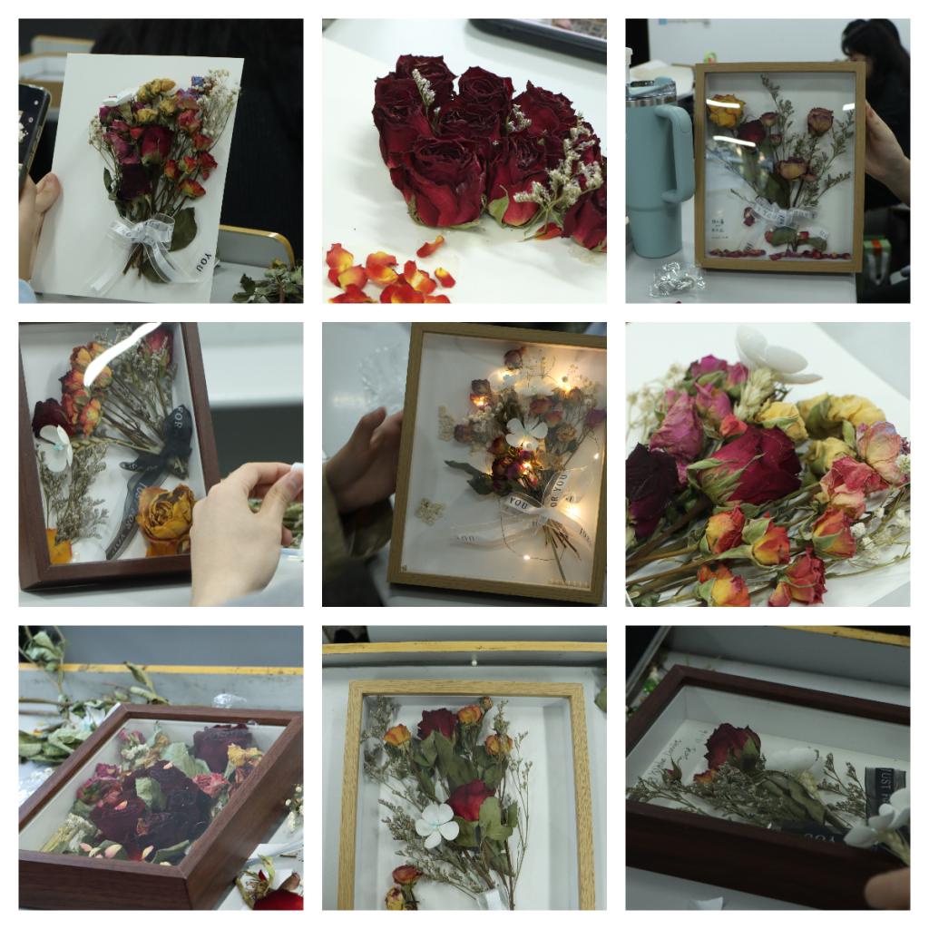 为帮助学生缓解学业压力、调节情绪状态,营造积极健康的校园心理氛围,11月16日,商学院“商shine驿站”在教学楼2-204举办“指尖生花,框住温暖”干花相框制作活动,约50名学生参与,在手工创作中传递心理治愈力量。