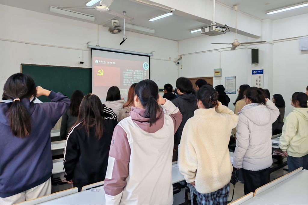 为加强党员队伍建设,筑牢新发展党员的思想根基,11月20日,商学院开展2025年下半年新发展党员集体谈话暨入党宣誓仪式,组织员吴佳妲及全体新发展党员参与会议。