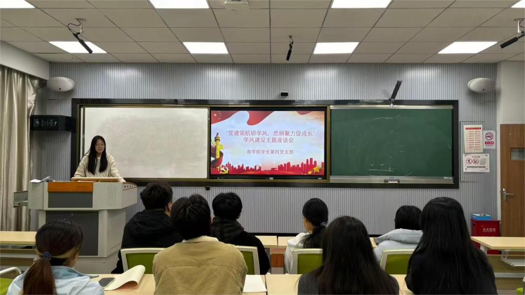 为充分发挥优秀党员榜样引领作用,推进学风建设,营造浓厚学习氛围,11月20日,商学院学生第四党支部在4-102教室召开“党建领航研学风,思辩聚力促成长”学风建设主题座谈会。会议由支部书记赵之遐主持,金融专业各班学习委员参加。基于“课堂革命”,会议围绕席卡使用规范、前三排就坐率、党员先锋模范发挥等问题进行深入交流,特邀支部周婉彤、郭艺颖等两位优秀的学生党员作学习经验分享。