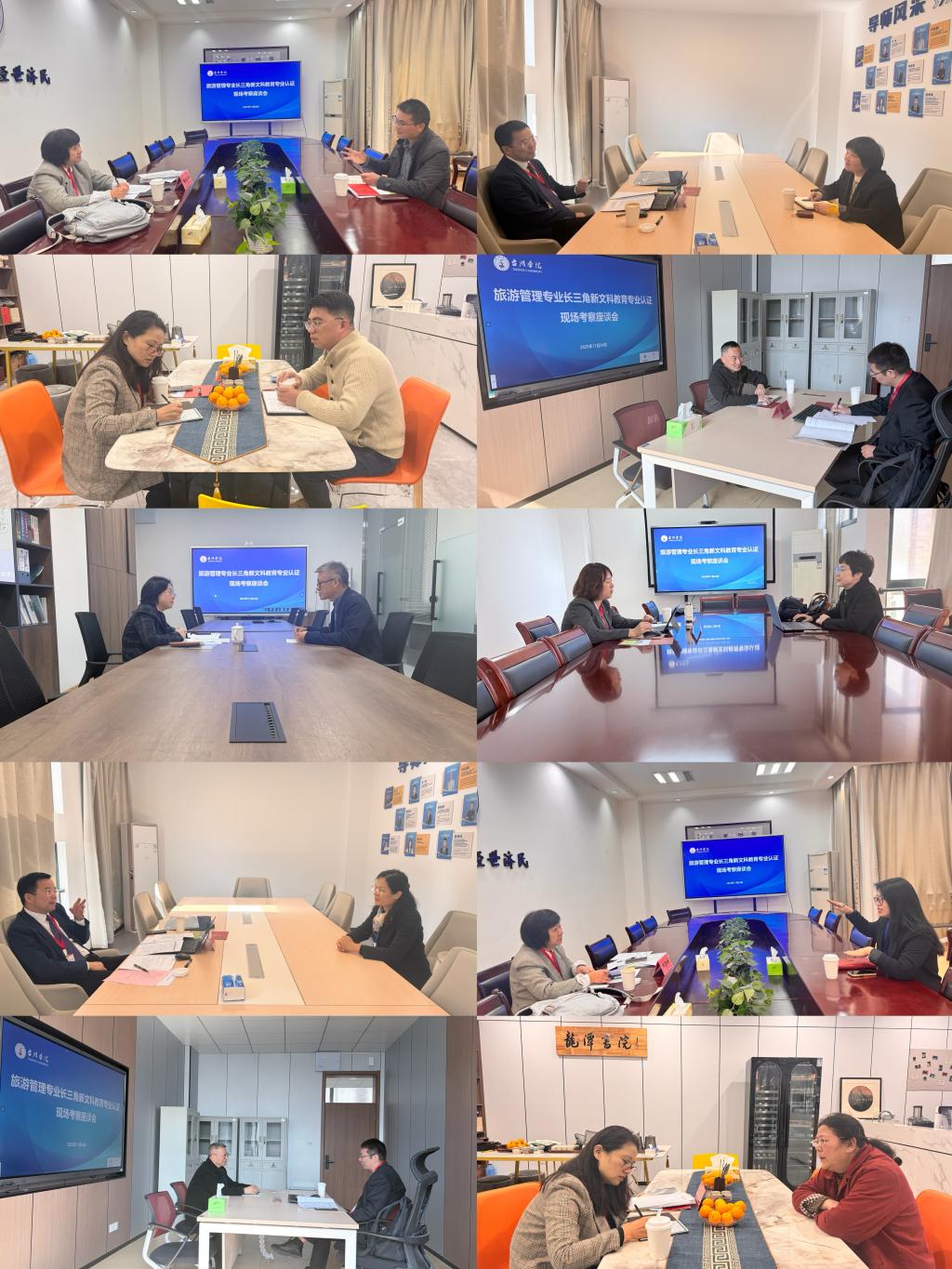 在前期线上听课的基础上,现场考查期间,专家组通过一对一访谈和座谈会等形式,分别与管理人员代表、专任教师、在校生代表、用人单位代表、毕业生代表进行了深入交流;实地考查了元宇宙虚拟仿真实验室、旅游心理与行为实验室、旅游大数据实验室、旅游技能实训室等教学设施配置与使用情况;系统审阅了校院管理文件、教学资料等相关支撑材料。