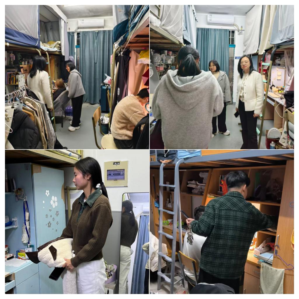 为将安全教育与隐患排查紧密结合,会后,学院迅速组织学工队伍深入学生公寓,对所有寝室进行了全面走访与冬季防火专项检查。走访过程中,老师们仔细查看了宿舍用电安全、物品摆放、消防通道等情况,现场提醒同学们注意冬季用电防火安全,对发现的风险点进行了及时提醒与记录。此次实地检查进一步强化了学生的安全防范意识,做到了安全教育与实地督导的同频共振。