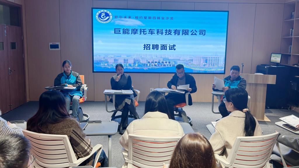 为精准搭建毕业生与企业对接桥梁,推动人才供需高效匹配,12月18日,商学院“职引未来”系列活动第六十六期暨“相约星期四”就业沙龙第六期在商学院406会议室举行。本期活动特邀巨能摩托车科技有限公司行政部经理徐明超等3人携财务、行政、外贸三类岗位走进校园,与12名2026届毕业生进行面对面深度交流。