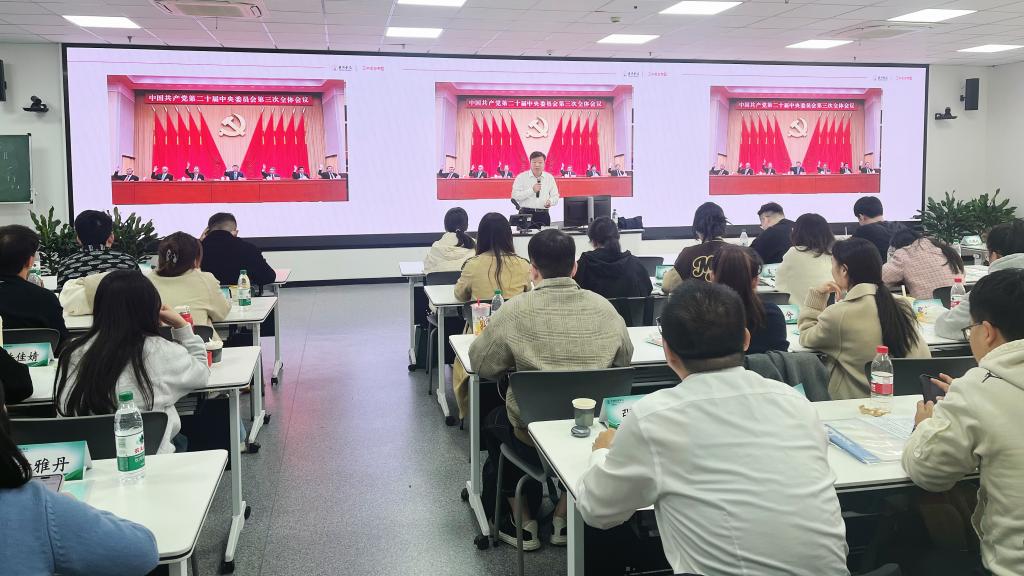 原台州学院党委副书记金先龙受邀作主题为《党的二十届三中全会精神解读》的讲座,让青年员工对党的最新政策有了更全面的认识。金书记详细讲解了会议的主要内容和精神实质,引导青年员工深入学习领会,将会议精神转化为推动工作的强大动力。