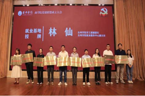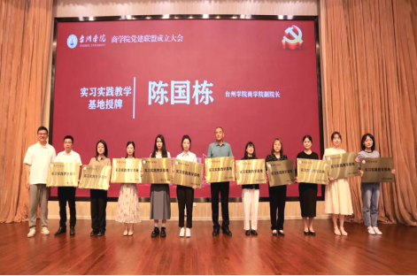陈国栋为浦发银行台州分行等24家实习实践教学基地授牌。