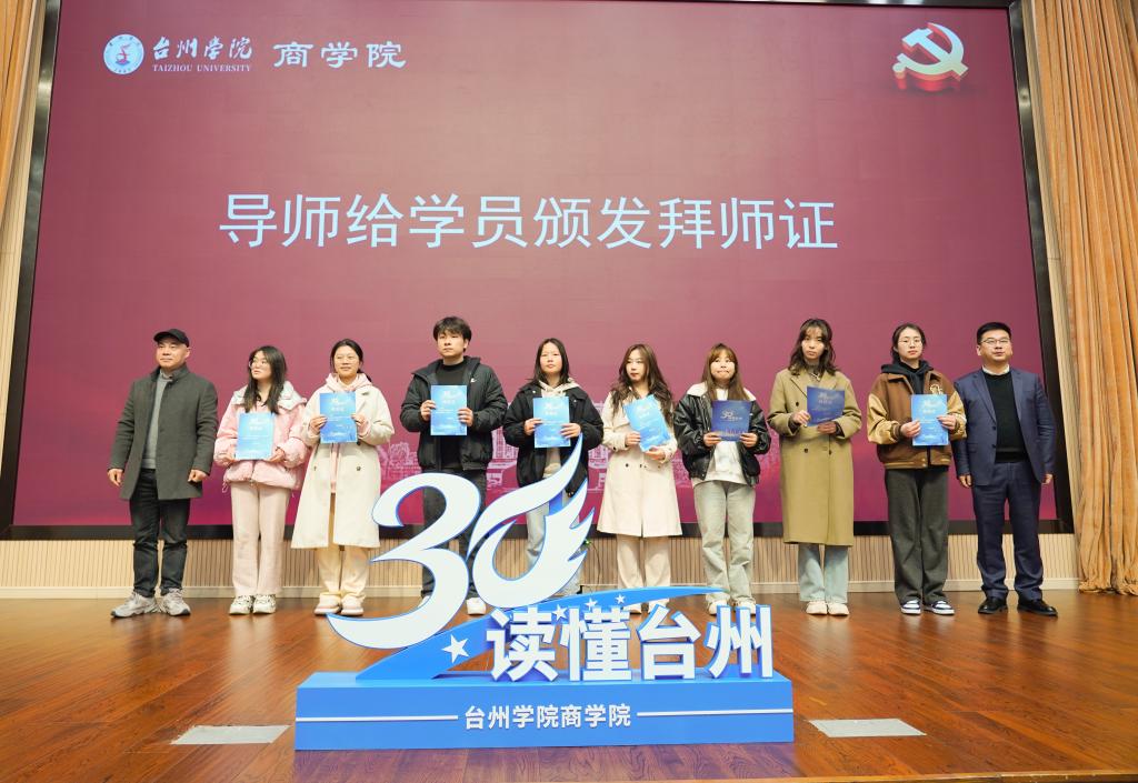 商学院党委书记马斌介绍学院的党建工作情况。他提到,学院将以“读懂台州”品牌创建为契机,发挥党建引领作用,开展“台州HR导师帮带制”“校外导师制”“校企党建联建”等活动,进一步提炼“30年30人”“30年30企”“30年30事”等台州经验,展示台州人民敢闯敢冒、敢为人先的品质,让更多的青年英才关注台州、爱上台州、留在台州。