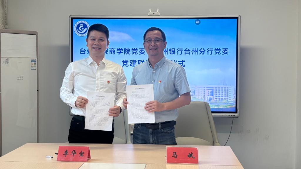 为更好发挥校企党建联建优势,深化产学融合,构建协同育人机制,11月11日,商学院党委与温州银行台州分行党委联合开展“党建联建聚合力,银校携手齐发展”党建联建活动。商学院党委书记马斌、温州银行台州分行党委书记、行长李华宝共同签订了党建联建协议书。