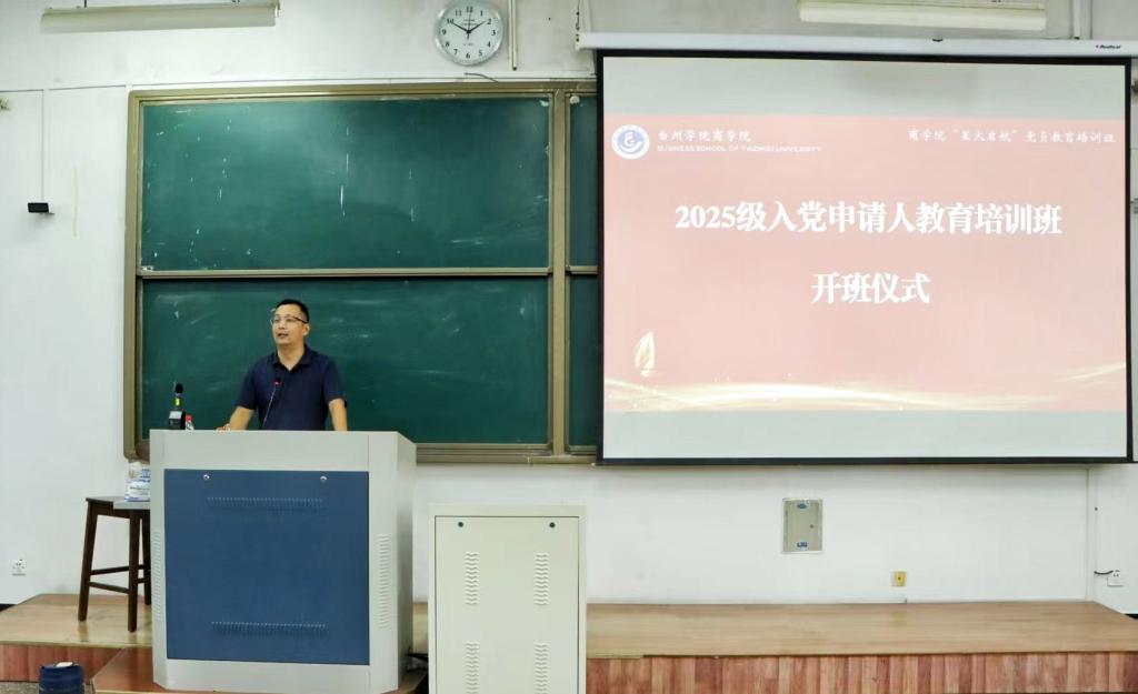 为深入学习党的创新理论、加强党性修养,明确入党申请人的发展方向,10月19日,商学院开展了“星火启航”党员教育之2025级入党申请人培训。商学院党委书记马斌、副书记陈斌岚出席开班仪式,2025级全体入党申请人参加培训。