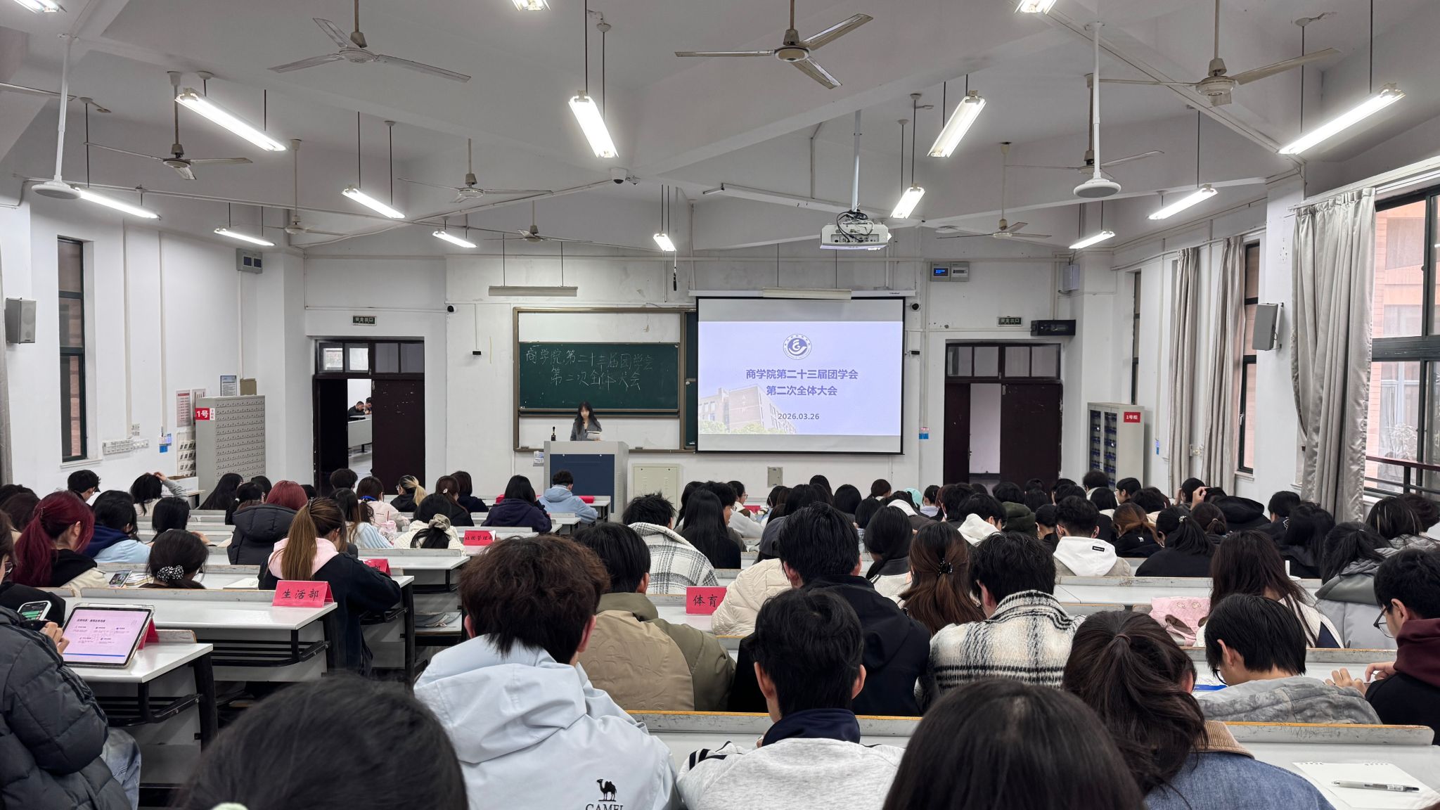 3月26日,商学院团学会于教学楼2-201召开第二次全体大会,开展工作汇报与新学期规划。本次会议旨在总结上学期团学工作成效、梳理工作不足、明确新学期工作方向与重点。商学院分团委书记项民,团学会主席团及各部门全体成员参会。