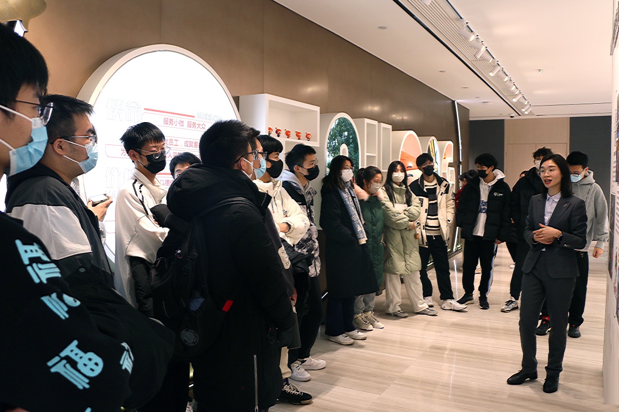 学生分批参观了泰隆银行的服务大厅、行史展厅等区域。泰隆银行积极开展社区银行试点,减少柜台设置,增设了台州非遗作品、台州好产品展示,充分彰显着泰隆服务小微,服务大众的使命担当。行史展厅里,泰隆银行坚守小微定位、坚持普惠情怀,在台州不断发展壮大的历程也让师生感动。此次活动增强了学生的学习信心,激发了学生对如何学好专业知识、服务地方经济发展的新思考。