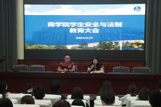 为加强学生的法律意识和法制观念,进一步提升学生的自我安全防范意识,做好学生安全稳定工作,9月27日晚上,商学院举行安全与法制教育大会。大会特邀上海财经大学法学博士、商学院经济法专任教师王永强开展法制教育宣讲。各年级辅导员、全体学生干部参加会议。学院党委副书记鲍婷婷主持大会。