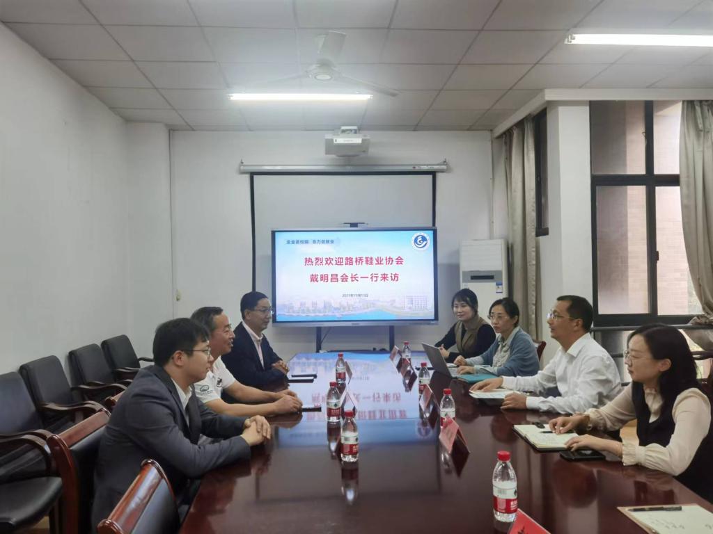 10月13日,路桥区鞋业协会会长戴明昌一行来到商学院洽谈校企合作事宜,商学院党委书记马斌、党委副书记陈斌岚出席,相关老师参加洽谈会。