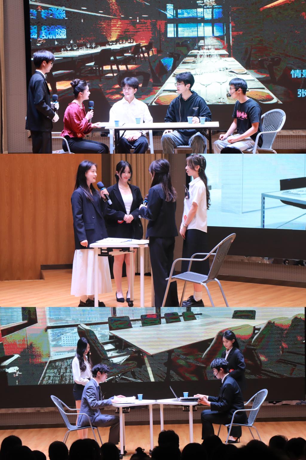 在商务礼仪情景剧环节,各选手围绕介绍礼仪、餐桌礼仪、电话礼仪及接待礼仪等方面,从正确展示和错误展示角度,生动形象的向观众展示了商务礼仪的注意点,赢得了观众的热烈掌声。与此同时,十佳歌手的精彩表演也为比赛增添了轻松愉快的氛围。