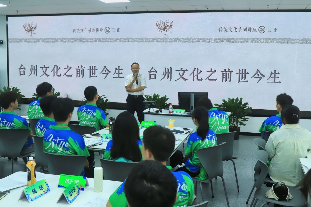 原台州学院副校长王正以台州文化之前世今生为主题,从台州地名读音的来源、台州的风雅文化到台州的文化名人,给同学们带来了一场生动有趣的文化大讲堂,让同学们更好的了解到了台州的魅力、更深层次感受到和合文化的内涵。