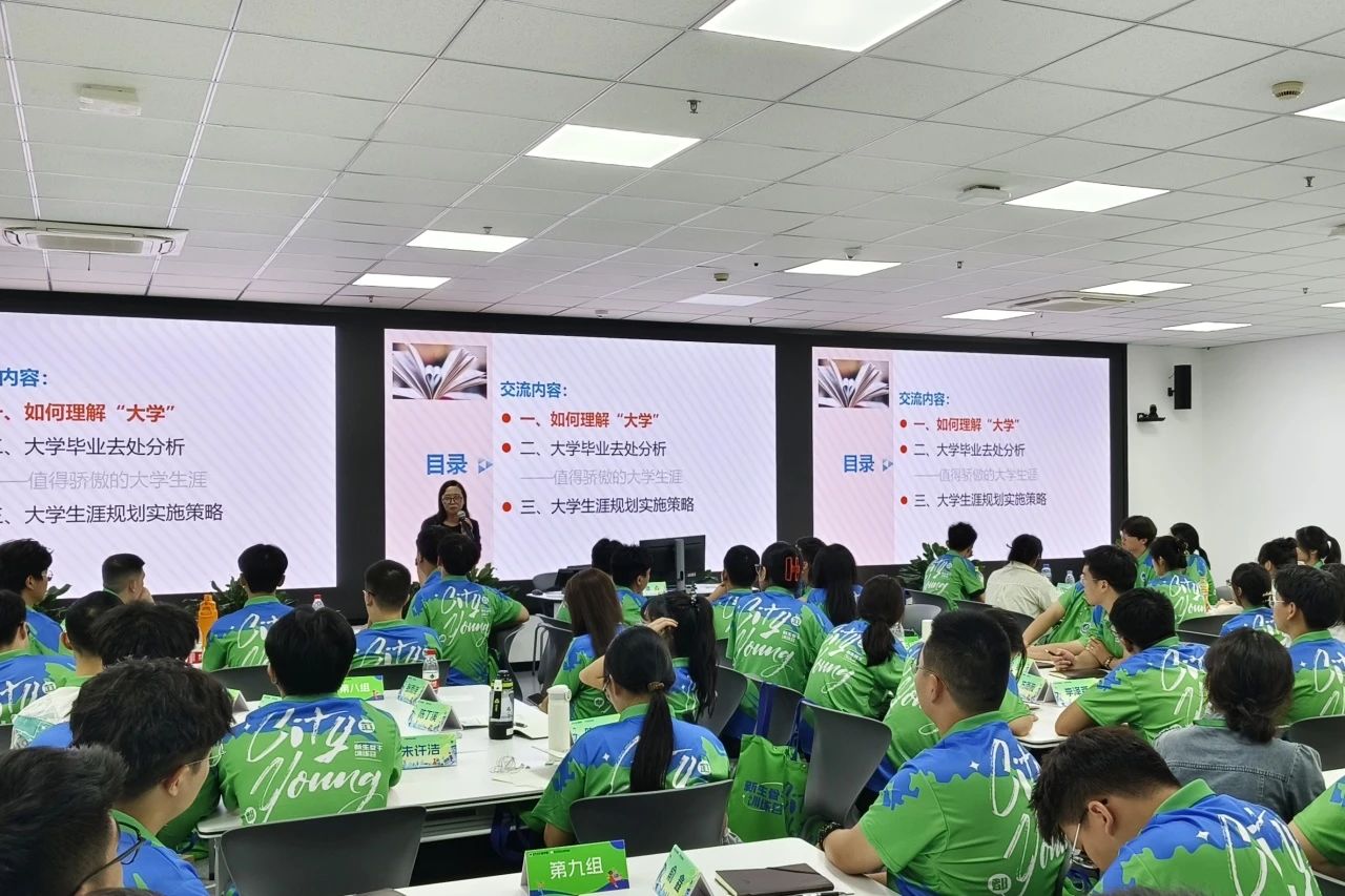 学员们分成九组,开展“素质拓展:破冰团队素质拓展训练”的活动,在欢乐又热烈的游戏活动中,各组队员携手并进、相互支持、彼此信任,充分展现了包容合作、奋勇拼搏的精神面貌。晚上,学员们开展了“学姐学长谈大学”主题交流活动,学员们和各专业班助面对面交流,有助于学员们更快地适应大学生活,成就更好的大学生活。