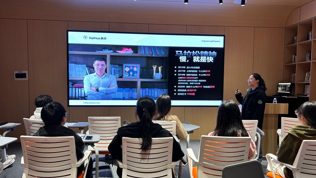 周冰进行了招聘宣讲,介绍了凯华的发展历程、企业特色、岗位设置、福利待遇等。并对本次参与活动的同学进行了初次面试,将基于学生的特点和求职意向推荐给相关部门进行二面。