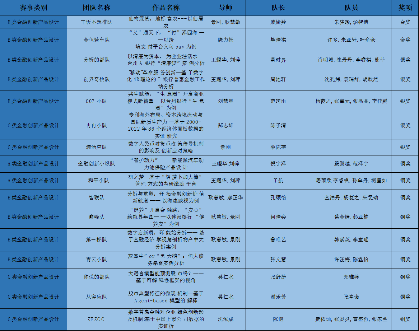 获奖名单