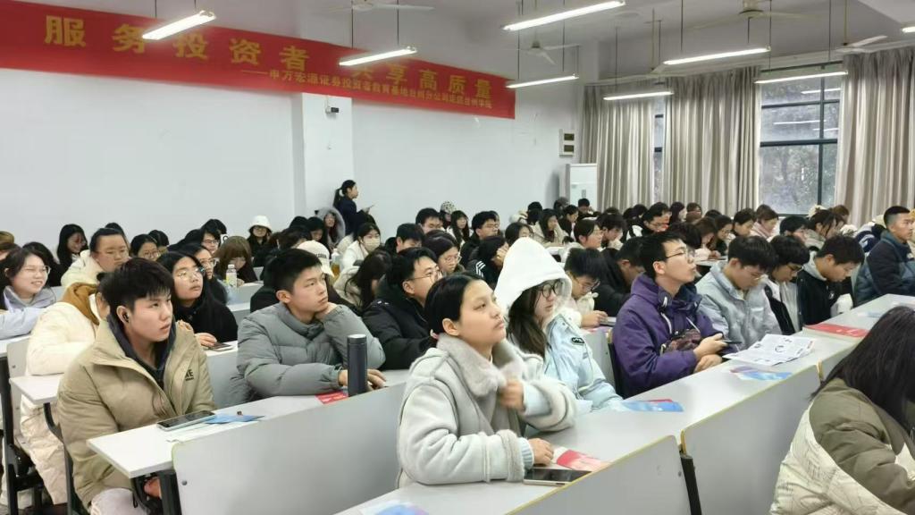 为丰富学生的金融知识,加强金融风险防范意识,12月12日,商学院邀请万宏源证券台州分公司证券投资顾问吴志华一行走进校园,作“服务投资者,共享高质量”主题讲座,100多名学生到场参加。