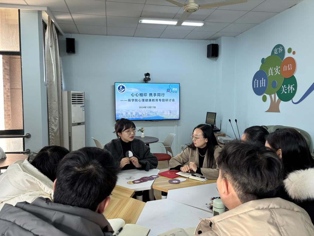 为提升辅导员心理育人能力,加强医校联动,切实发挥“商shine驿站”的教育引导作用,12月17日上午,商学院召开心理健康教育工作研讨会。本次研讨会特别邀请台州市第二人民医院临床心理治疗师陈潇涵进校分享经验,会议由商学院党委副书记陈斌岚主持,全体学工办辅导员参加。