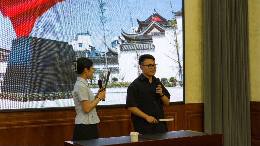 三门县乡创青年代表、台州市鲜礼家生态农业有限公司总经理杨丰恺结合自身扎根乡村的创业实践,分享了宝贵经验。随后,活动进入精彩纷呈的展示环节:选调生杜硕以轻松幽默的脱口秀《青春撞上田野》,生动讲述了选调生在基层的奋斗故事;选调生翁梦婷和石磊则以原创相声《九景宁和笑谈录》,巧妙融入乡村新貌与创业元素,展现了青年对乡村振兴的独特观察与热情,其新颖形式和有趣的内容赢得现场阵阵掌声。