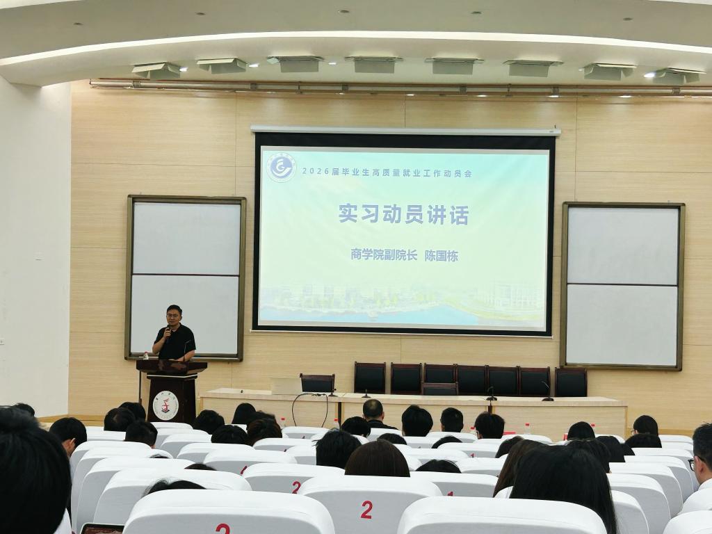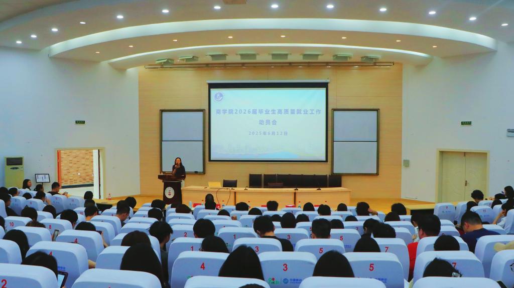 为全面提升毕业生就业竞争力,拓宽职业发展路径,6月12日,商学院在学术报告厅召开2026届毕业生高质量就业工作动员会。会议由学院党委副书记陈斌岚主持,学院领导、全体辅导员及2026届毕业生参会。会议围绕当前就业形势分析、高质量就业思维培养、研究生报考策略辅导、实习实践动员、实习就业安全教育等主题展开,希望同学们提前谋划,利用暑假完善求职材料,抓住“金九银十”秋招求职关键期,为职业发展奠定坚实基础。