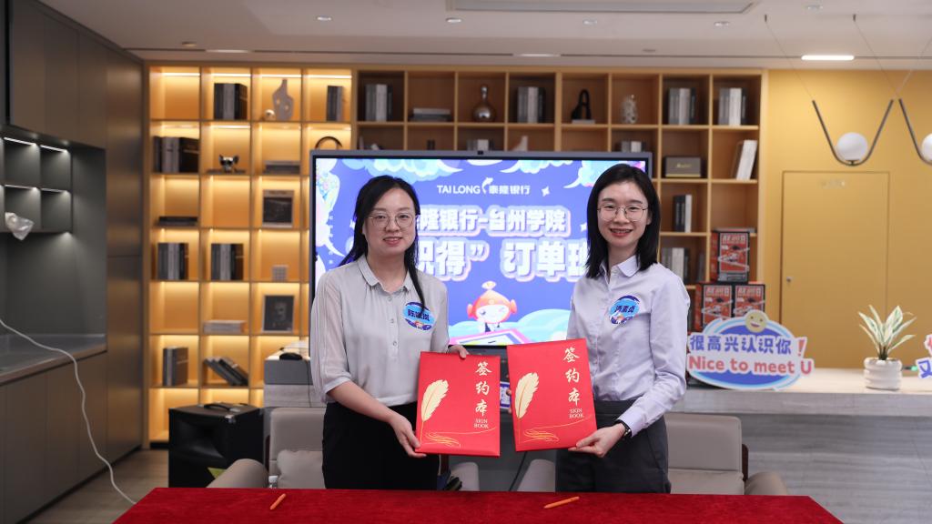 仪式现场,商学院党委副书记陈斌岚与泰隆银行台州分行人力资源总经理潘素贞共同签订了订单班合作协议,标志着校企双方在人才共育、资源共享、优势互补等方面达成了更为紧密的联系,共同描绘了产教融合的崭新蓝图。