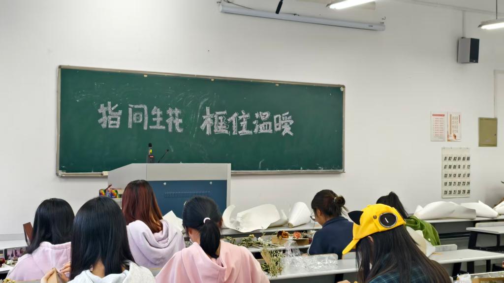 为帮助学生缓解学业压力、调节情绪状态,营造积极健康的校园心理氛围,11月16日,商学院“商shine驿站”在教学楼2-204举办“指尖生花,框住温暖”干花相框制作活动,约50名学生参与,在手工创作中传递心理治愈力量。