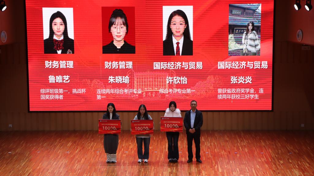 活动伊始,商学院依次为获得国家奖学金、浙江省政府奖学金、“三台”特等奖学金,校一等奖学金、优良学风班等奖项的个人和团队进行表彰,并宣读在创新创业、学科竞赛中获得国奖和省奖同学以及考取研究生、公务员等毕业生,激励更多同学不断追求卓越,勇攀高峰。