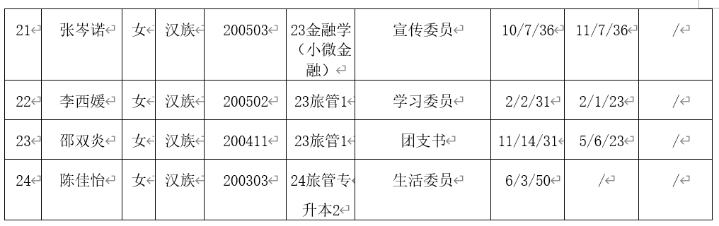 根据《中国共产党发展党员工作细则》《中共台州学院委员会发展党员工作细则》等有关规定。经支委会研究,拟确定马婉倩等24位同志为发展对象。现予以公示,接受广大党员、群众监督。