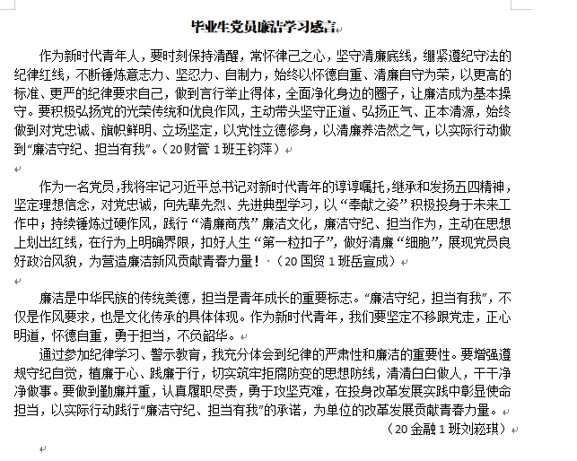 为深入学习贯彻习近平总书记关于党纪学习教育的重要讲话和指示精神,加强新时代廉洁文化建设,传承党的光荣传统和优良作风,筑牢毕业生党员廉洁从业思想防线。6月17日以来,商学院组织毕业生党员,开展“勤廉商茂”廉洁教育系列活动。